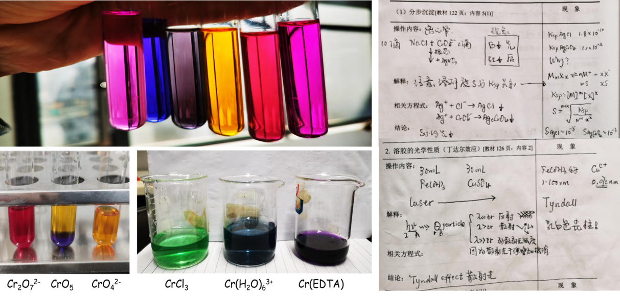 图5 左:绚丽多彩的元素验证实验;右:对于性质实验现象的预测与解释