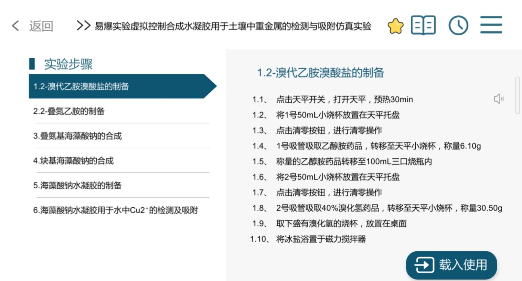 虚拟仿真实验可以模拟真实的实验环境,依托虚拟现实、人机交互、网络通信等技术,构建高度仿真的虚拟实验资源和环境,可以不受空间、时间和仪器限制,实现对实验基础知识的学习、基本仪器设备的使用及具体实验项目的仿真操作。通过虚拟仿真操作,让学生直观地触摸和身临其境的体验化学实验。有助于学生充分消化相关理论知识以及提升学生的创新思维。《易爆实验虚拟控制合成水凝胶用于土壤中重金属的检测与吸附仿真实验》是本人申请的校级虚拟仿真项目,学生可以按照虚拟仿真系统中的提示进行操作,实验完成后点击提交并在课后提交。通过整套系统的虚拟仿真实验操作,学生掌握了该实验的相关化学知识,通过虚拟仿真实验教学,实现了智能化、泛在化的实验教学新模式。
