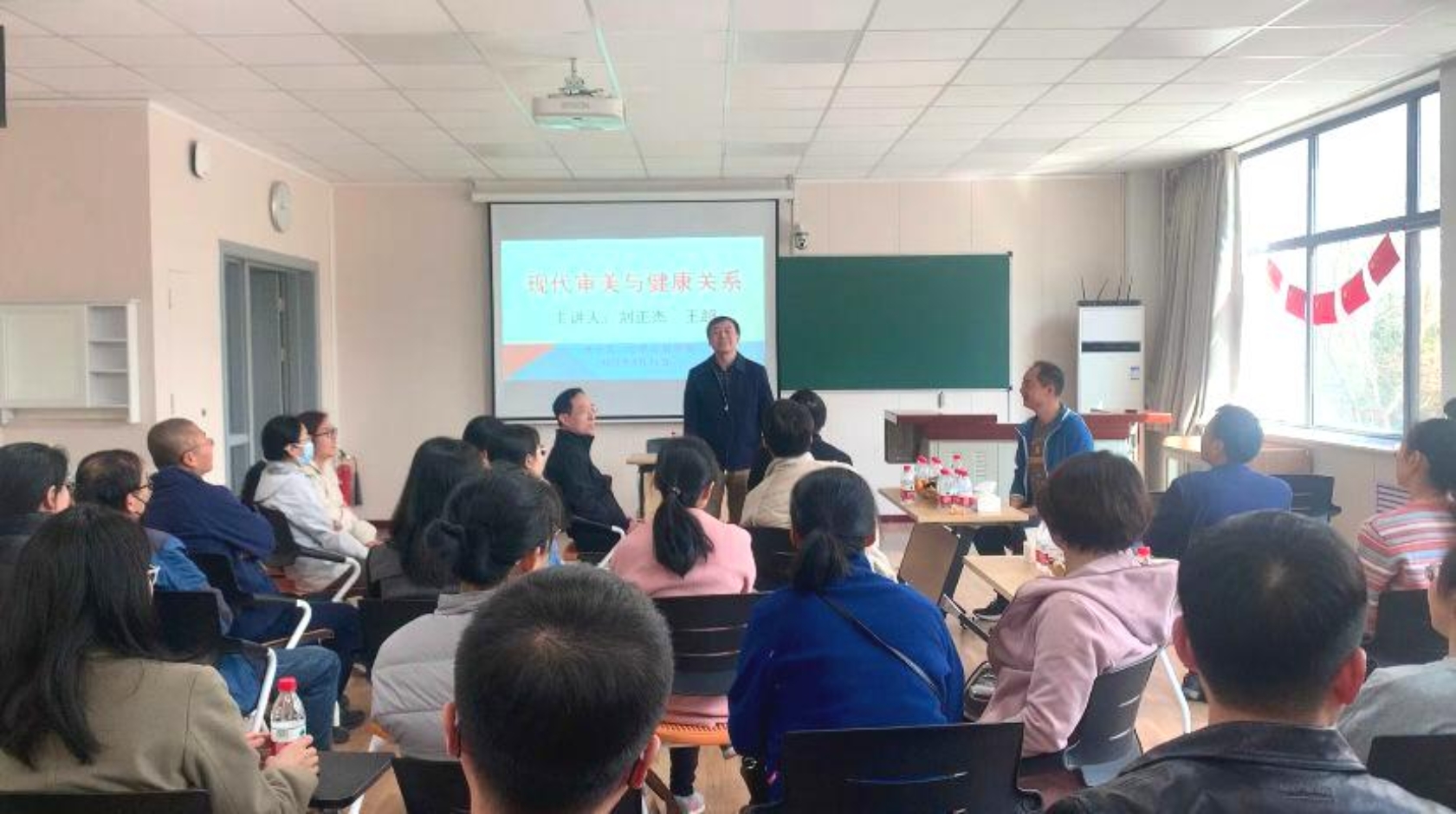 为倡导健康的工作方式,普及科学的健身理论和方法,3月31日下午,age动漫 联合理age动漫 共同邀请体育部刘正杰副教授和国家健美一级运动员王超老师在理科楼A213开展“现代审美与健康关系”讲座。来自两个age动漫 共计30余名教师参加了本次培训活动。