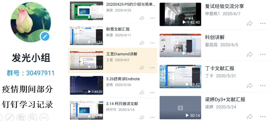 组会活动是课题组正常运转的必要环节。课题组组会时间固定,每周一次,内容包括导师定期介绍研究领域的最新进展,以及学生介绍自身研究成果和论文阅读心得等。为开阔组员的学术视野,课题组每到考研结束,还安排高年级的讲解备考经验,每当毕业季来临或竞赛活动即将开始时,组会还会成为一个预演平台,导师和同学们观摩毕业或竞赛答辩预演,对预演内容和表现形式等提出意见和建议,从而助其实现最佳展示效果。“组会制度”非常有利于低年级学生早期接受科研氛围熏陶,培养他们的专业兴趣,引导他们扎实学习理论知识以解决实际问题,继而启发他们的创新思维。更重要的是,这一制度可以加强各层次学生和研究者之间的了解与交流,使课题组的人才培养呈现出可持续发展的态势。即使在2020年开春,新冠疫情肆虐的时候,小组同学仍然坚持线上组会学习,一直到返校。由于同学们之间的相互鼓励和督促,刘垣园同学在家坚持撰写Mn4+掺杂的Mg2InSbO6的发光性质的研究论文,并完成初稿,返校后投出,并被美国陶瓷协会杂志接收。
