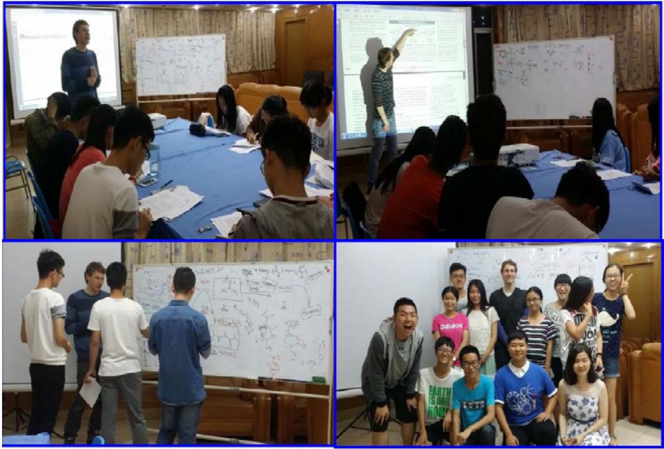 有机化学是研究有机化合物的来源、结构、性能、机理、制备、应用以及相关理论和方法的一门科学。近几十年来,有机化学学科有长足发展,一方面其自身发展很快,另一方面与生命科学、材料、环境、现代医学等学科密切交叉融合发展。我校“国家生命科学与技术人才培养基地”建设是培养现代生物科学与技术类学研产相结合的创新人才,为促进化学与生命学科交叉融合和提高学生国际化竞争力,自2016年开始,与春季学期有机化学(全英文)课程相衔接,有机化学全英文教学团队于暑假期间尝试开展了创新与实验age动漫 生物基地班学生自愿参加,外教担任主讲的能力与素质拓展全英文课程——生命与有机化学(Life and Organic Chemistry)分子研讨课。