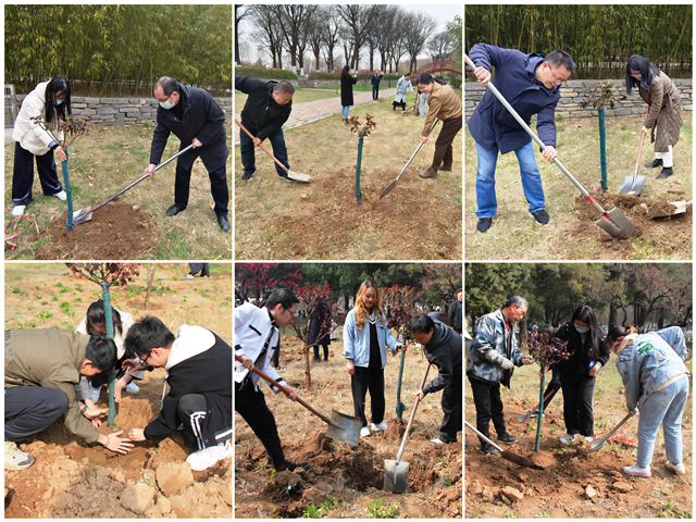 “阳春三月万物苏,植树播绿正当时!三月,学雷锋志愿服务月遇上植树节,各位师生党员、教职工,要主动学习雷锋精神,树牢绿水青山就是金山银山理念,今日阳光正好,让我们一起为春意盎然的学校增添一抹绿、一片红!”在化药age动漫 党委书记高增刚的鼓舞下,师生党员和教职工志愿者们发扬不怕苦、不怕累的劳动精神,以最饱满的热情投入到活动当中。两到三人一组,从挥锹铲土到扶苗填土,再到浇水定根,大家相互配合、干劲十足,各个环节分工明确、配合默契,每一环节都精心对待、一丝不苟,即便挥汗如雨也乐在其中。经过一番辛勤劳作,小树苗们迎风而立,在春日里展现出勃勃生机。