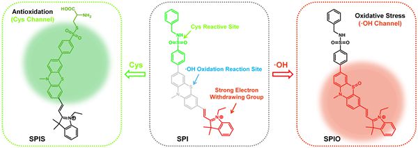 在生命体中,ROS通过和抗氧化酶以及抗氧化剂之间的氧化还原反应保持着浓度平衡,其中•OH作为最活跃的活性氧之一与Cys的动态平衡关系对于维持这种生命体生理稳态起着至关重要的作用。因此实时监测这两种生物活性物种在细胞及组织内的生理过程与浓度变化对生命体活性氧自动调控机制研究意义重大。
